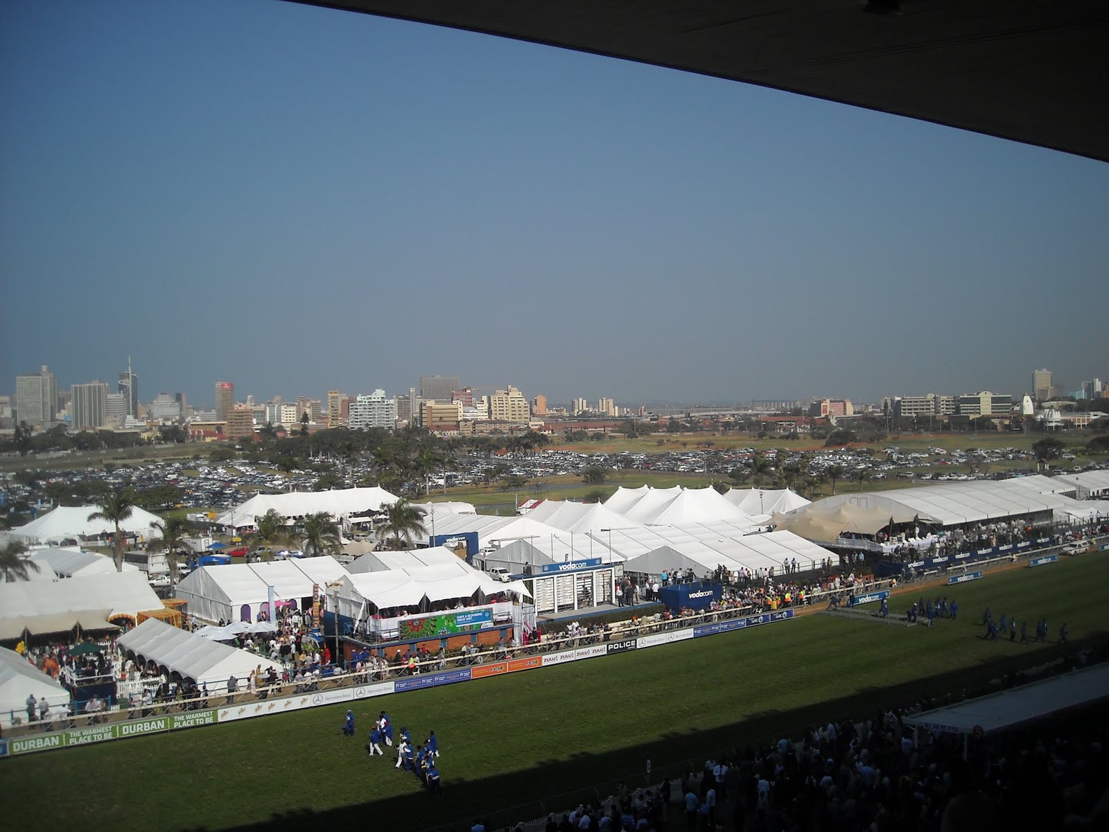 One downside was witnessing a huge brawl which I later learnt resulted in 2 people being stabbed. Hubby was delayed in picking up the Alien because he had to dodge the flying fists and cop vans in order to get out of the place. Yes, Chicken Man was there but he was not in the box with me. He had to slum it amongst the plebs as he was tasked with entertaining clients. Okay, so he was in the Sharks tent rubbing shoulders with rugby legends and being plied with food and Flasher girls. He too was a Durban July virgin and declared the whole experience an absolute pleasure even though there was not a Black Label in sight and he had to drink some other headache inducing beer.
