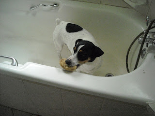 It was a bar of soap that Roxy had been chewing on! What? The dog may not be a genius but she is not THAT stupid. Yes, her breath does smell at times but wesurely haven’t given her that much of a complex about it? Anyway – why not chew on a tube of toothpastethen?